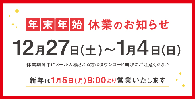 特に、お盆や年末年始、増税など社会的情勢の変化時などは配送の遅れが生じる可能性がありますので特にご注意ください。また、運送業者や天候、災害等による二次的な納期の遅延に関しての保証はできかねます。