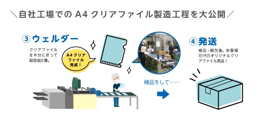 今回はお客様だけのオリジナルクリアファイルがどのように出来上がっていくか製造工程をご紹介します!