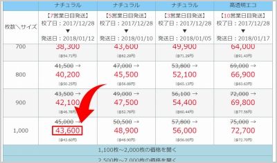 価格表にない間の端数をご希望の場合は、価格表上部の計算ツールにご希望数量を直接ご入力し、価格をクリックください。