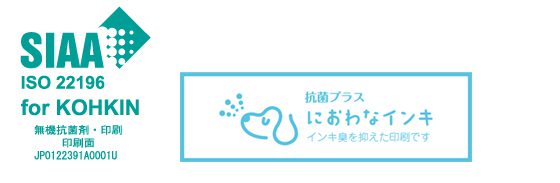 かさまーとで作成する抗菌印刷商品には、抗菌製品技術協議会(SIAA)認定のSIAAマークの表示が可能です。