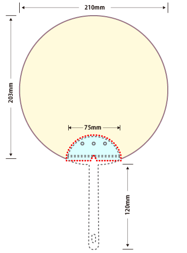 催事やお祭りなどで配られる一般的な紙製のうちわは、使いやすく送風のチカラもある横24.3センチ、縦34.4センチのサイズが幅広く使われています。そのサイズ感に近い直径210mmサイズのクリアうちわが新登場しました。大きな面はうちわとしての機能性はもちろん、デザインも大きく使用できるためオリジナルデザインを幅広くアピールすることも可能です。水に強い素材(再生PET)/柄の部分は(ポリプロピレン)のため、屋外イベントや海やプールなど水に濡れる場所でも安心してご利用いただけます。
