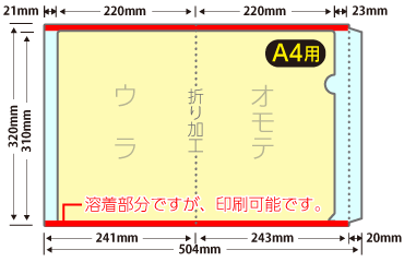 ミシン目に沿って開封すれば、A4クリアファイルとしても利用できる封筒型ファイルは、受け取った相手の印象に強く残る可能性が高く、販促効果抜群の印刷商品です。