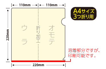 3つ折りにしたA4チラシがちょうど入る大きさのクリアファイル印刷商品です。
