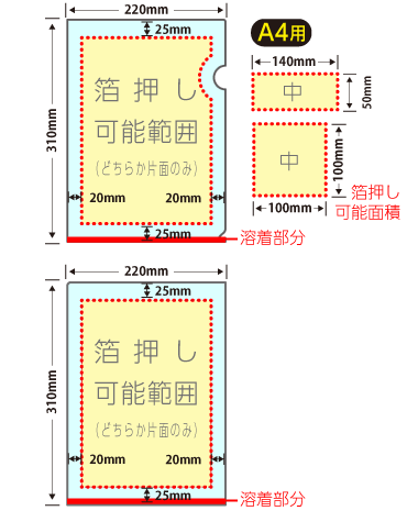 A 箔押し範囲内(天地25mm、左右20mm以内)であれば、箔押し可能です。