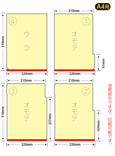 A4クリアファイルに、3つのポケット(2つの仕切り)がついた印刷商品です。