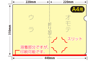 A4クリアファイルに、名刺を差し込むスリットが入った印刷商品です。