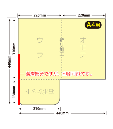 A4クリアファイルを開いた右側に、小サイズのポケットがひとつ付いた印刷商品です。