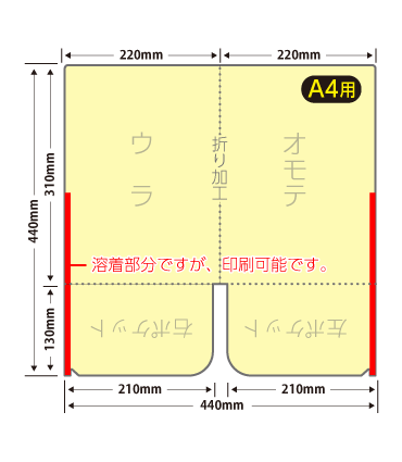 A4クリアファイルを開いた両側に、小さめのポケットが付いた印刷商品です。