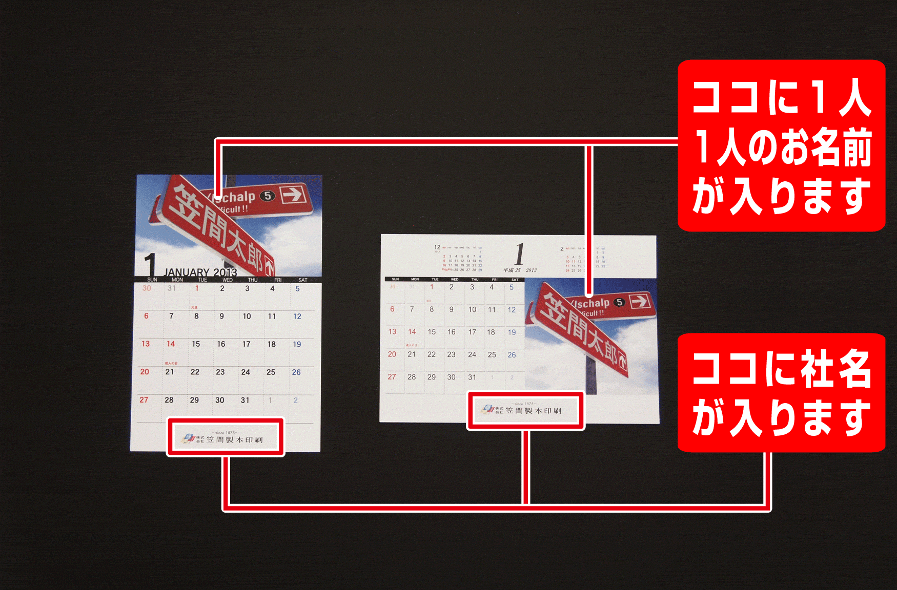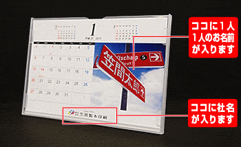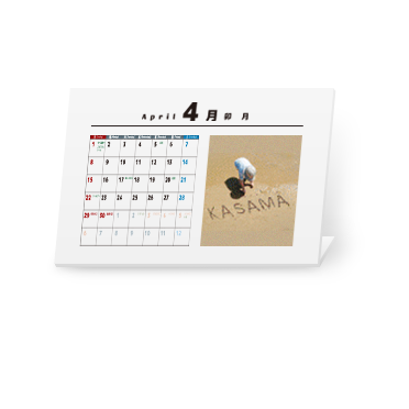 人気のバリアブル卓上カレンダーは、可変印刷によって写真の部分にお好きな文字を入れて作成することができます。
