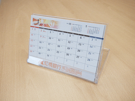 組み立ていらずのケース入り卓上カレンダー 一般的なハガキサイズです。