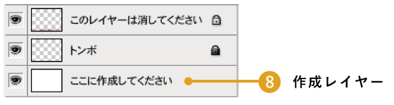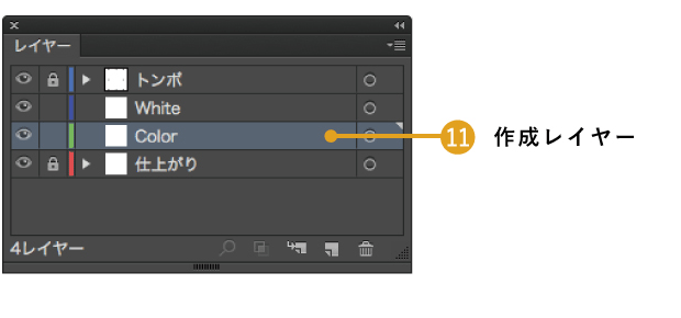11 作成レイヤー | テンプレートの「Color」レイヤーにデータ作成してください。レイヤーの並び順は変更しないでください。![]() |
