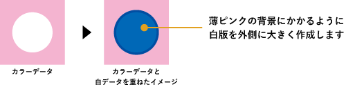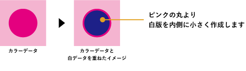 3 オフセット | カラーデータと白版データがピッタリ同じサイズだと、印刷時の素材の伸びで絵柄から白がはみ出してしまうため、白版のサイズを調整する必要があります。