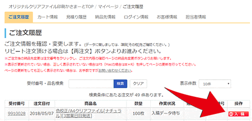 マイページ入稿ができないお客様は、ご注文いただいた後、クリアファイル印刷データの入ったCD-R やDVD-R を下記までご郵送ください。
