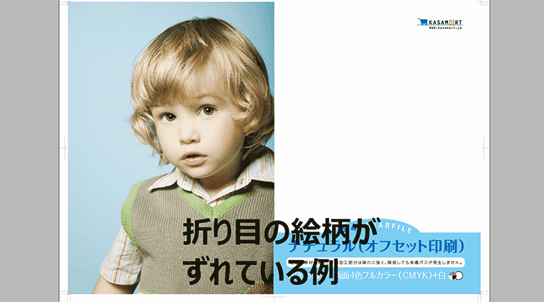 製品の仕上がりサイズぴったりにデータを作成すると、断裁する時に生じるわずかなズレで絵柄が途切れてしまい、キレイな仕上がりになりません。