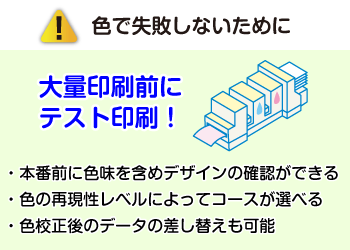 ②色校正では大量印刷前に色味の確認ができる