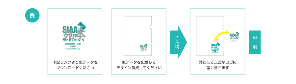 SIAAマークの正式なデータはお渡しすることができないため、マークを表示させたデザインを作成される場合は、下記リンクからダミー用の仮データをダウンロードいただき、お好きな場所に配置してください。